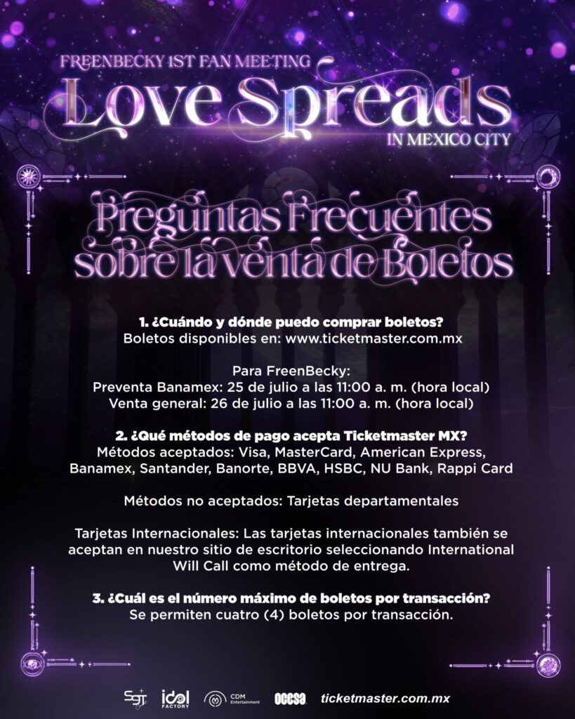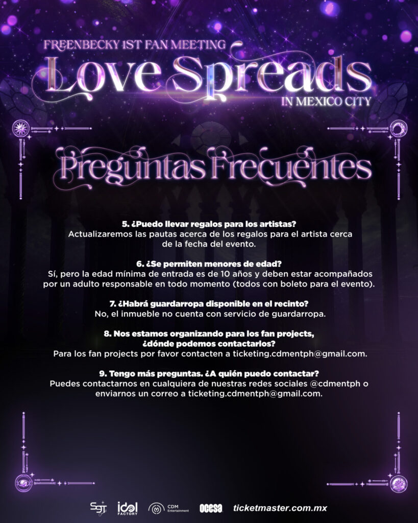 El FREENBECKY 1st Fan Meeting [LOVE SPREADS] promete una noche llena de presentaciones en vivo, segmentos interactivos y experiencias VIP exclusivas que reflejan la emotiva energía de sus eventos anteriores. Sus fan meetings pasados han ofrecido momentos inolvidables, incluyendo actuaciones dinámicas, sesiones íntimas de preguntas y respuestas, además de celebraciones impulsadas por los fans que han resonado profundamente con audiencias en el sudeste asiático y Latinoamérica.