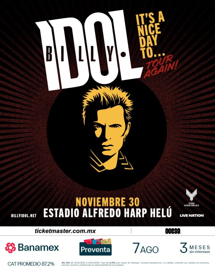El icono del rock Billy Idol traerá su gira It’s a Nice Day To…Tour Again! a Ciudad de México este 30 de noviembre al Estadio Alfredo Harp Helú, siendo este, su primer concierto en la capital desde 2024.