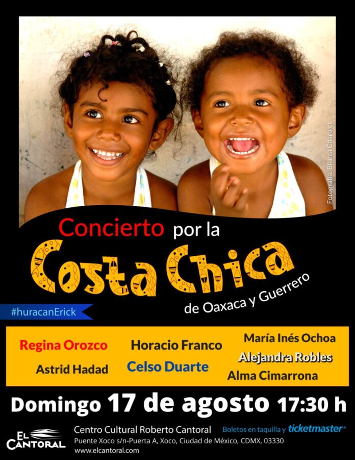 Los habitantes de la zona siniestrada perdieron todo: casas con su mobiliario básico, cosechas, lanchas, cayucos, redes de pesca, entre muchos otros bienes. La comunidad artística mexicana siempre se ha mostrado solidaria y receptiva ante los desastres naturales. En este sentido, cantantes, músicos y grupos de danza unirán esfuerzos en torno a este evento noble, cercano y amoroso en favor de los damnificados del huracán Erick.
