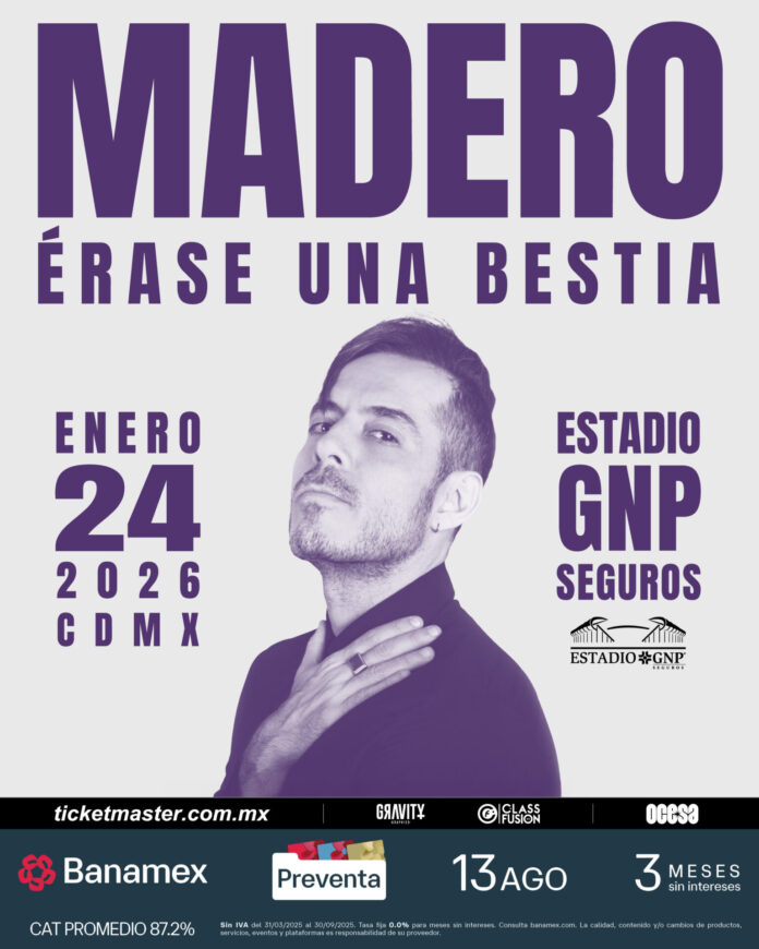 José Madero, una de las voces más representativas del rock mexicano, anuncia ‘Érase Una Bestia’, su próxima presentación en el Estadio GNP, que se llevará a cabo el 24 de enero de 2026, en lo que promete ser la fecha con mayor audiencia para el artista hasta hoy, consolidando su papel como uno de los cantautores más importantes del continente.