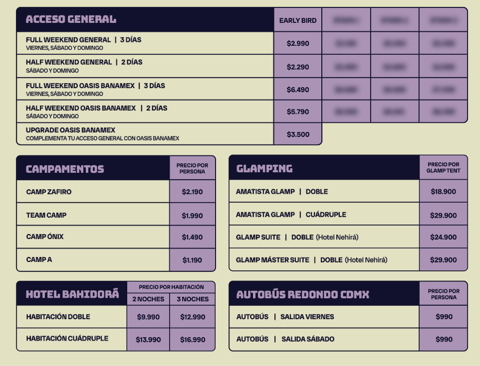 El festival Bahidorá esta de vuelta el 2026, se parte de esta celebración en Las Estacas, del viernes 13 al domingo 15 de febrero de 2026, los boletos ya se encuentran a la venta en su fase Early, abajo te dejamos una imagen de los costos y de otras amenidades como el camping.