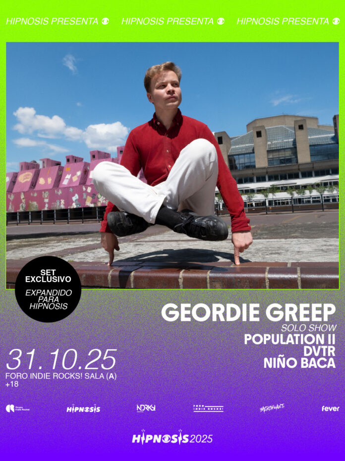 El Tío Hipnosis expande el trip del Festival Hipnosis de este año y trae un set exclusivo previo a la octava edición con Geordie Greep (Solo Show), Population II, DVTR y Niño Baca este próximo viernes 31 de octubre en la Sala (A) del Foro Indie Rocks!