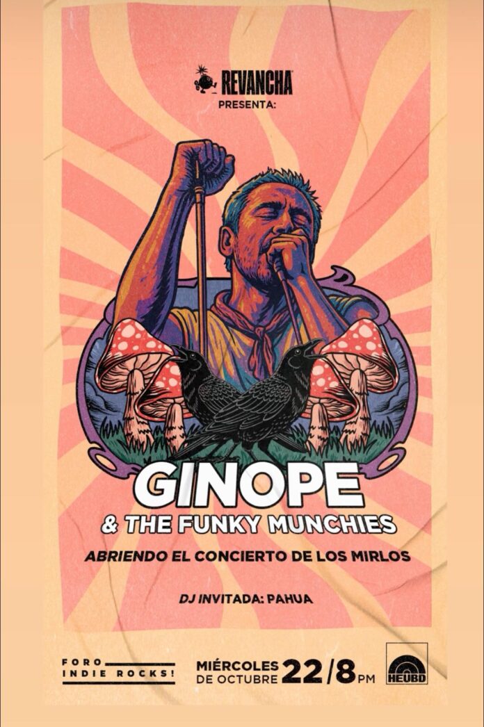 Además Ginope & The Funky Munchies estarán en la CDMX presentando en vivo el disco «Funky Munchies» el miércoles 22 de octubre en el Foro Indie Rocks!, como banda abridora de Los Mirlos, con quienes trabaja como productor