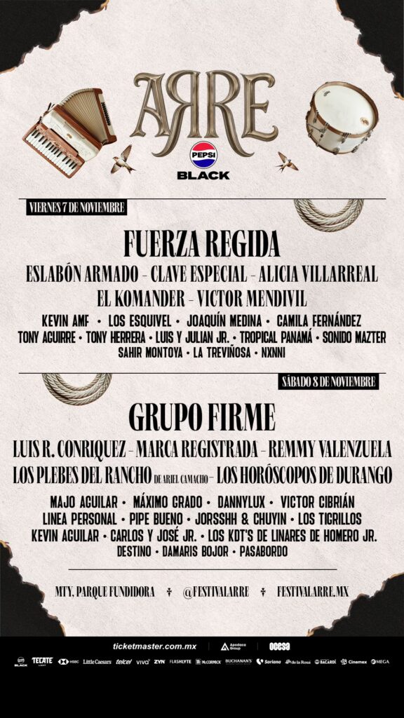 El Festival Arre Pepsi Black 2025, que celebra la diversidad y el talento de la música regional mexicana llegará al Parque Fundidora de Monterrey, Nuevo León este 7 y 8 de noviembre, previo al evento Majo Aguilar una de las artistas confirmadas para esta edición mostró su entusiasmo por estar en el festival.