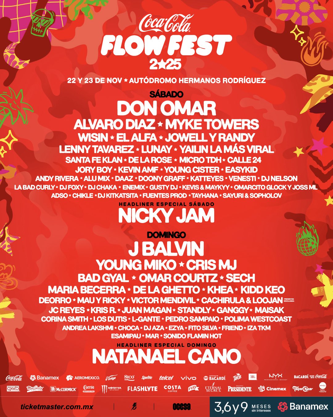 El lineup 2025 es contundente y diverso: figuras como Don Omar, J Balvin, Young Miko, Nicky Jam, Bad Gyal, Sech, María Becerra, Natanael Cano, entre muchos otros, prometen dos días de energía explosiva y comunidad musical.