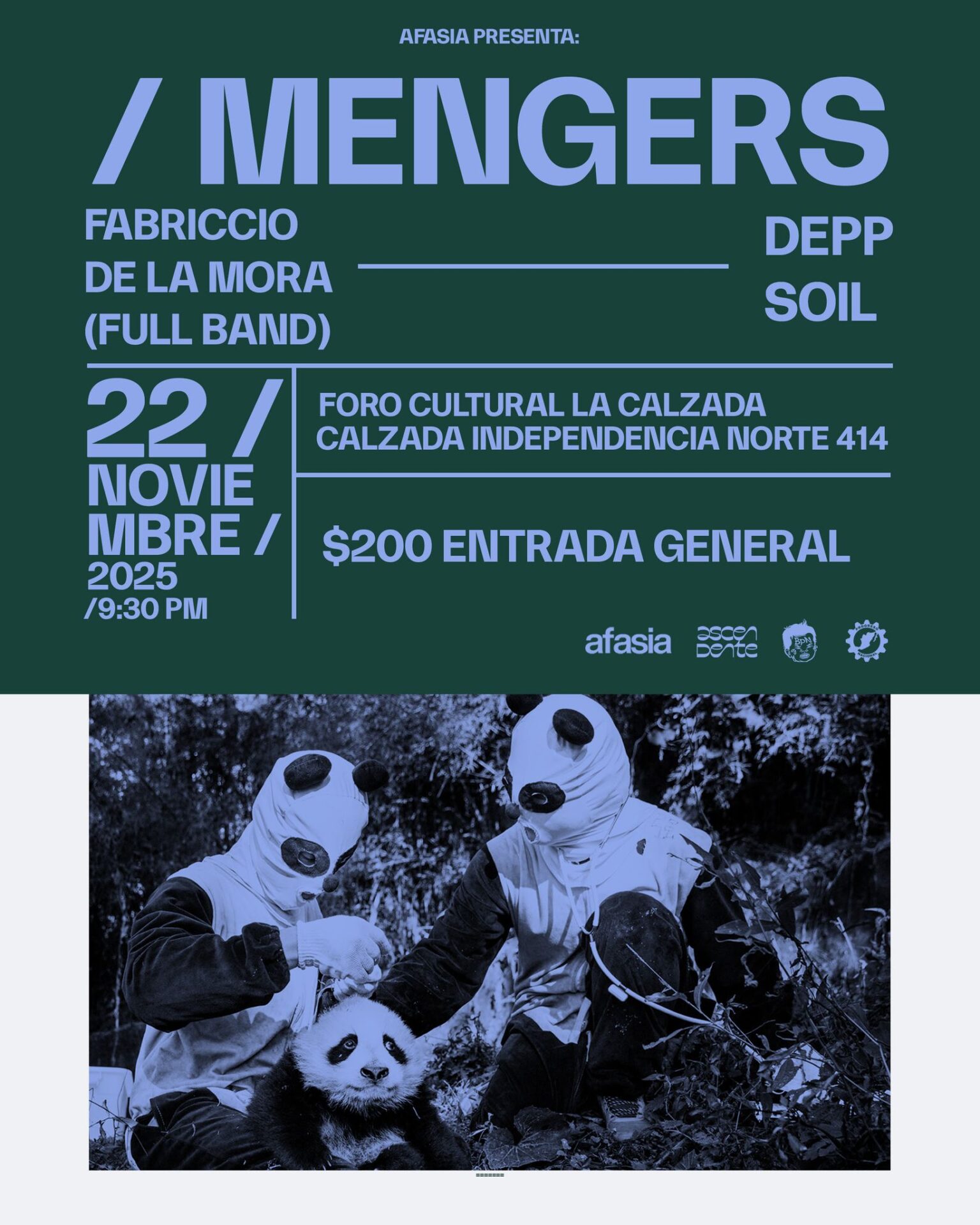 El trío de artpunk citadino se encuentra a cuatro días de presentar su reciente material de larga duración Flavio en Guadalajara el próximo sábado 22 de noviembre de 2025. Mengers tomará el escenario del Foro Cultural La Calzada (Calzada Independencia Norte 414) para una noche donde el ruido, la intensidad y el desconcierto emocional son garantía.