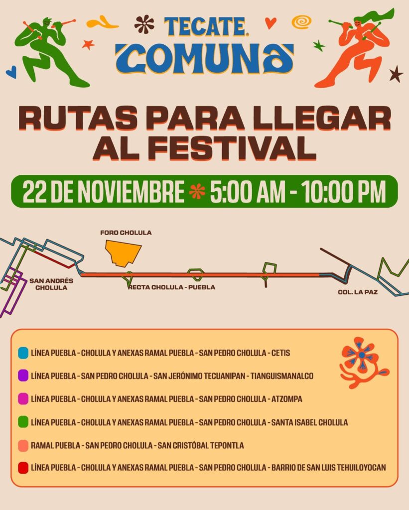 El festival Tecate Comuna ha llegado, este sábado 22 de noviembre podrás disfrutar a una gran cantidad de artistas en el Foro Cholula, Puebla; los boletos han sido sold out consolidado el festival como el mas grande de Puebla
