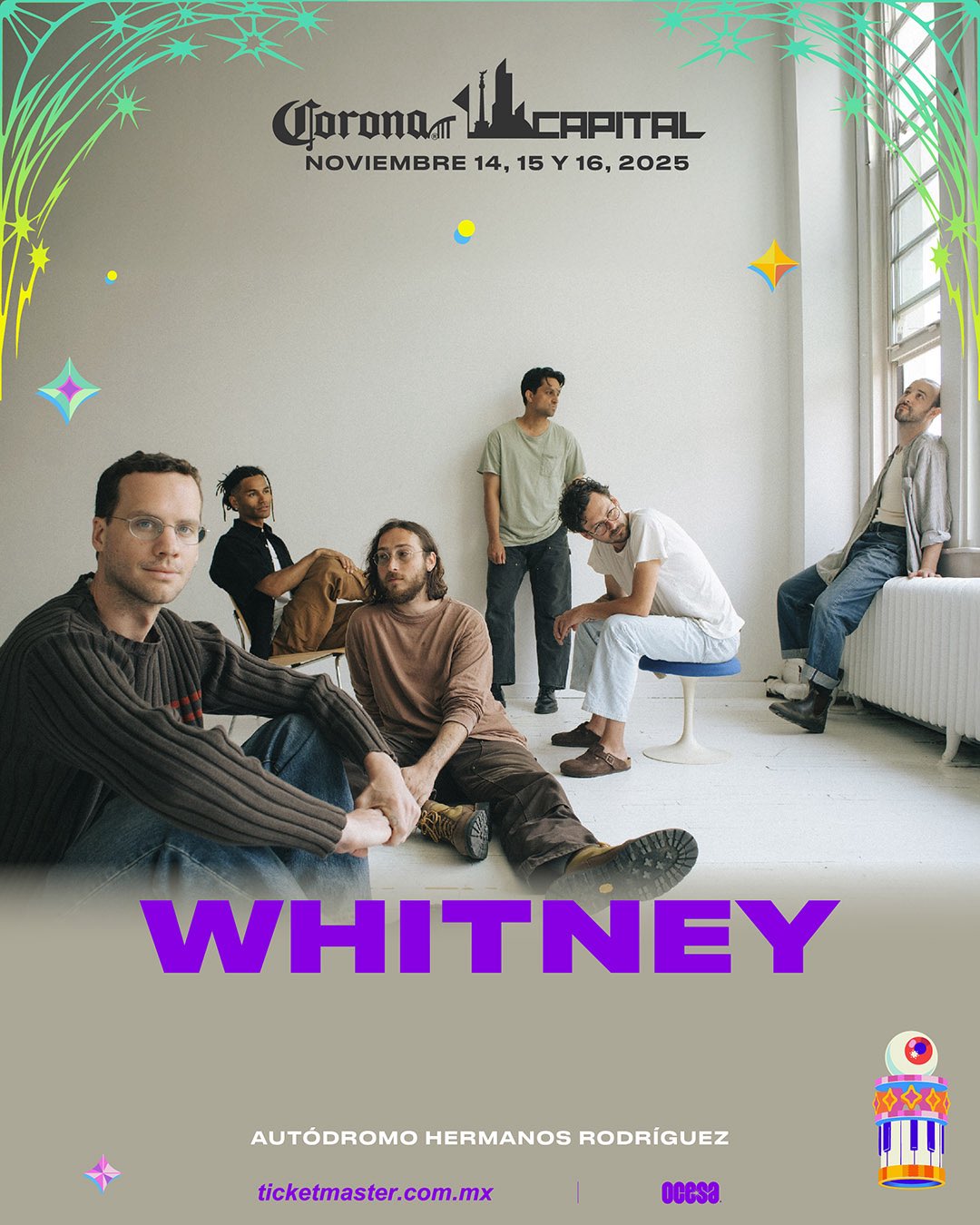El festival Corona Capital 2025 continúa con algunas sorpresas y en esta ocasión se anuncia la llegada del grupo Whitney quienes acaban de lanzar un nuevo álbum, por otro lado, Waxahatchee causo baja para esta edición, el festival se realizará del 14 al 16 de noviembre en el Autódromo Hermanos Rodríguez, puedes adquirir tus accesos a través de Ticketmaster.