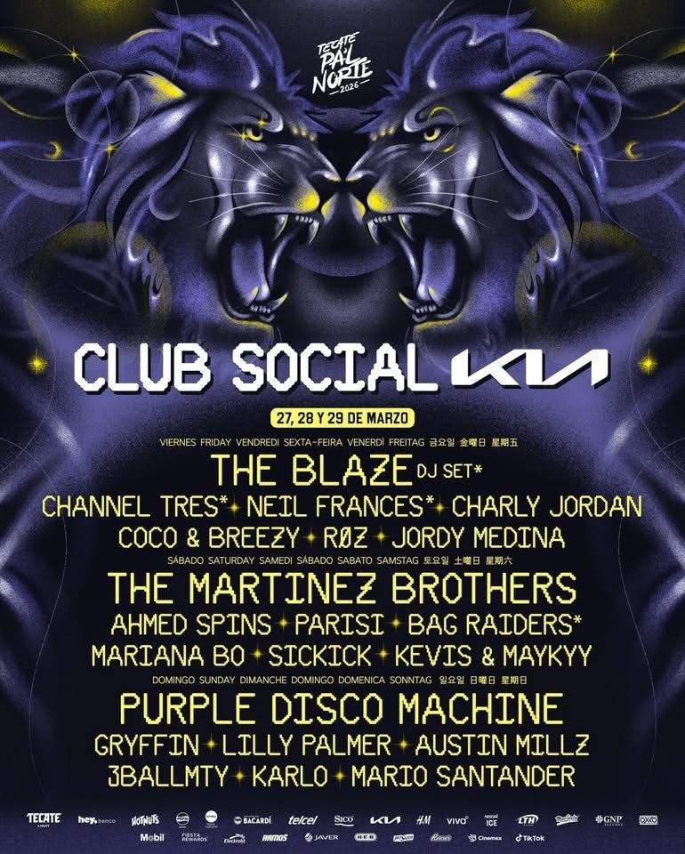 Club Social Kia del Tecate Pal Norte traerá lo mejor de la música electrónica, una parada obligada para los amantes de este género dentro del evento, regularmente ubicado en una zona estratégica y céntrica del festival que cuenta con un domo lleno de luces y un buen uso de bajos que al caer la noche se hace más espectacular cada sesión en este lugar; el baile está garantizado conoce a los artistas que estarán presentes este 27, 28 y 29 de marzo en el Parque Fundidora en Monterrey, Nuevo León, no olvides que puedes adquirir tus accesos a través de Ticketmaster