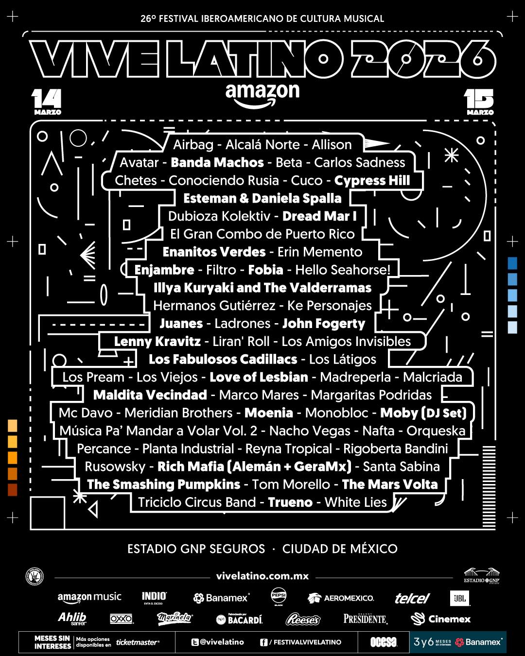 El festival Vive Latino llega con un line up interesante y con grandes actos, no olvides que puedes adquirir tus accesos a través de Ticketmaster, aquí abajo te dejamos el line up completo