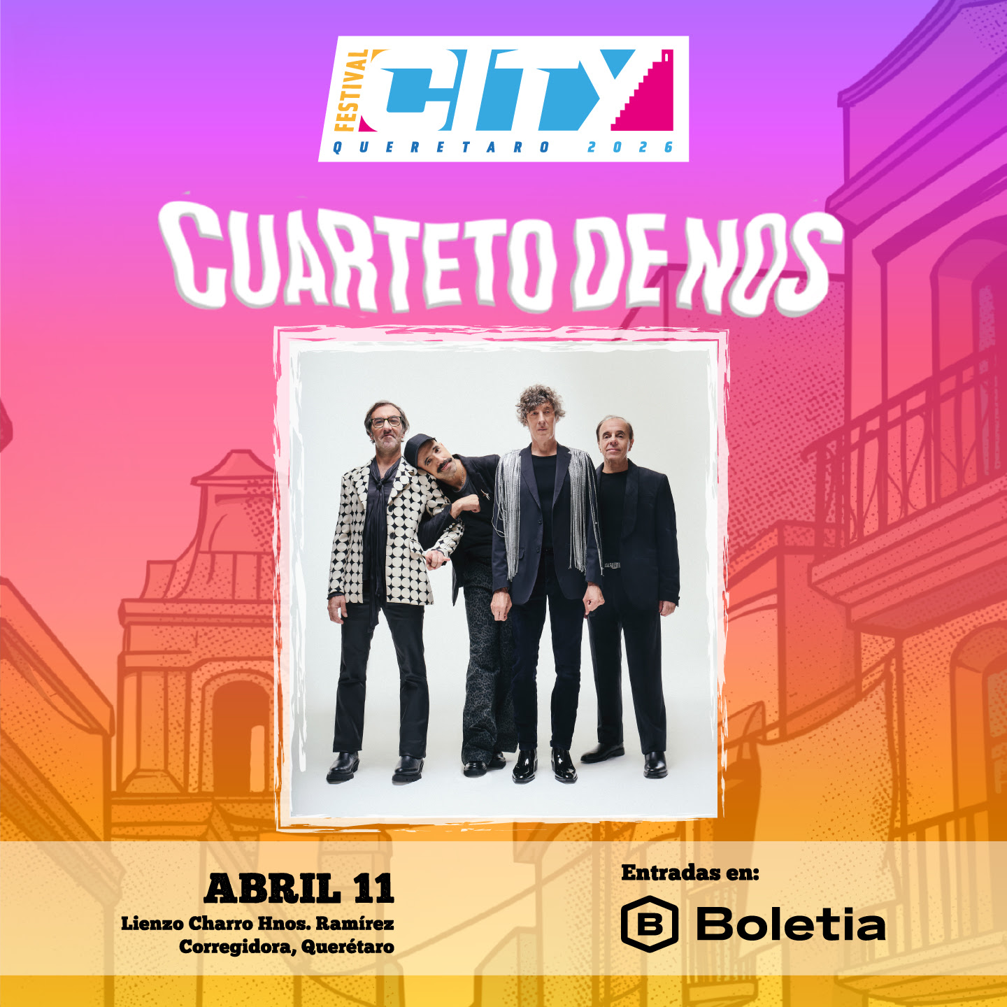 El 5° aniversario de Festival City Querétaro sigue dando de que hablar y hoy llega con una noticia que emocionará a miles: El Cuarteto de Nos, una de las bandas más influyentes del rock alternativo en español, llegará a Lienzo Charro Hermanos Ramírez este 11 de abril, para presentar un show único y totalmente diseñado para sus fans queretanos.