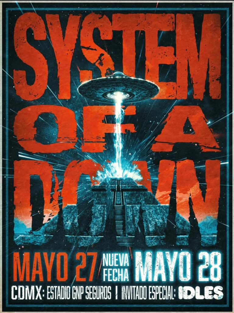 System of a Down visitará Cd. de México para realizar dos conciertos en el Estadio GNP Seguros los días 27 y 28 de mayo, los accesos se pueden adquirir en Ticketmaster, el grupo abridor de estos shows será IDLES.