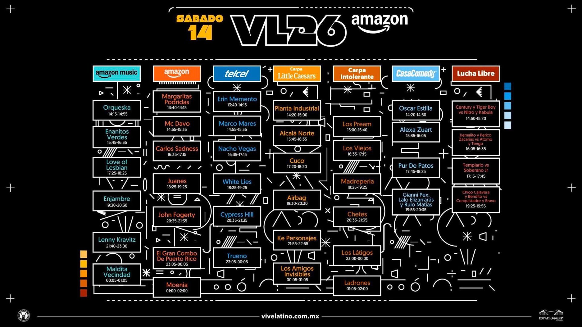 El Vive Latino 2026 ya reveló los horarios oficiales de los actos que tendrá para esta edición 2026, el festival que se realizará en el Estadio GNP Seguros y sus alrededores contará con cinco escenarios musicales, una arena de lucha libre y una casa de comedia.