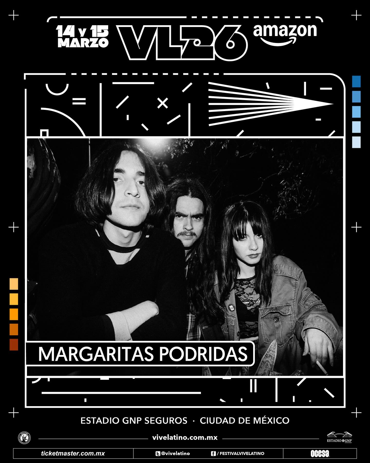 Margaritas Podridas se presentarán el sábado 14 de marzo en el Festival Vive Latino, escenario Amazón, su horario asigando es de las 13:40hrs, hasta las 14:15hrs.