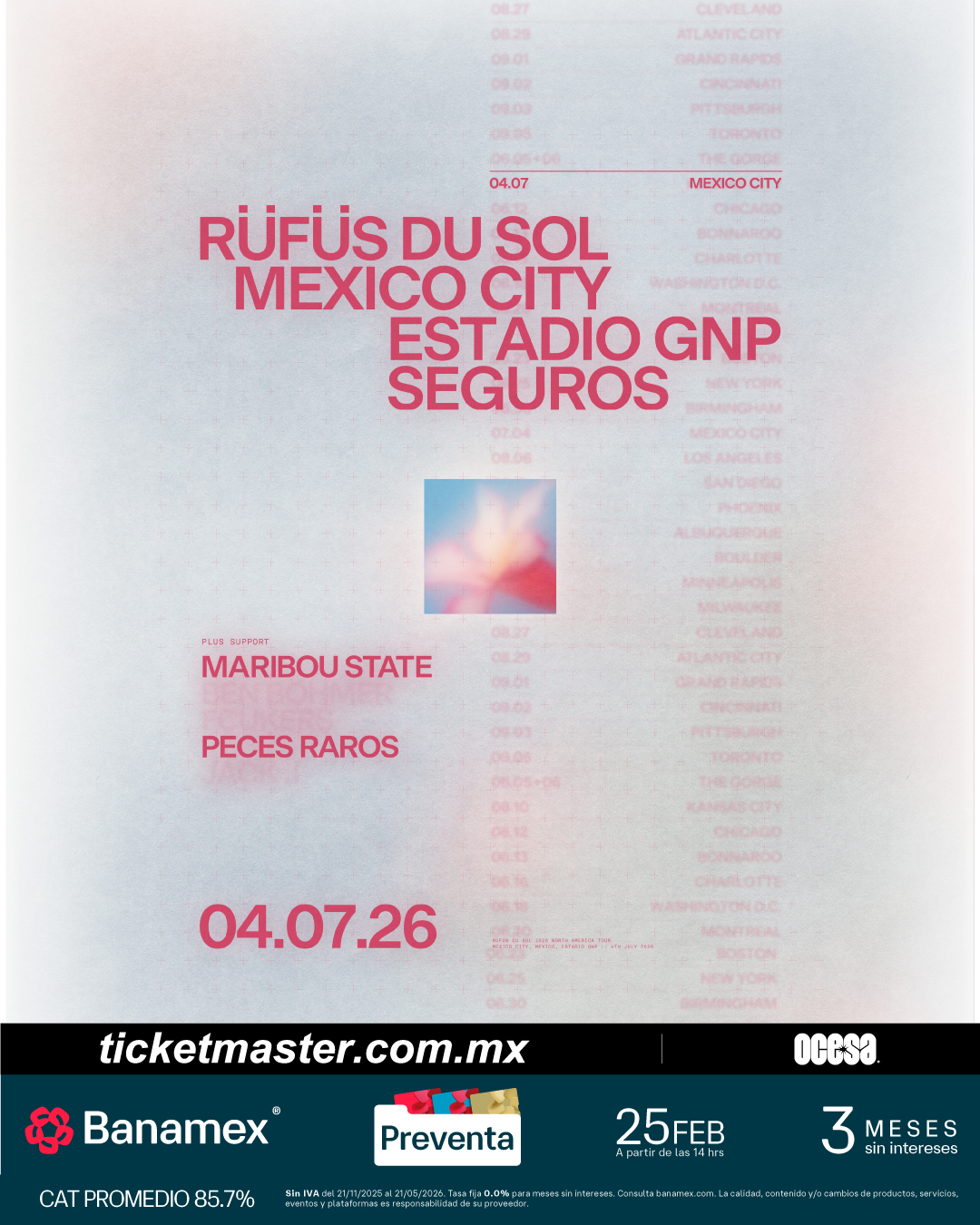 La preventa de RÜFÜS DU SOL iniciará el martes 24 de febrero a las 11 a.m. hora local, los fans pueden registrarse en https://livemu.sc/rufusdusol antes del lunes 23 de febrero a las 10 a.m. ET / 7 a.m. PT. No se necesitan códigos, el acceso está vinculado a tu cuenta de Ticketmaster, y cualquier persona que se registre puede unirse a la venta.