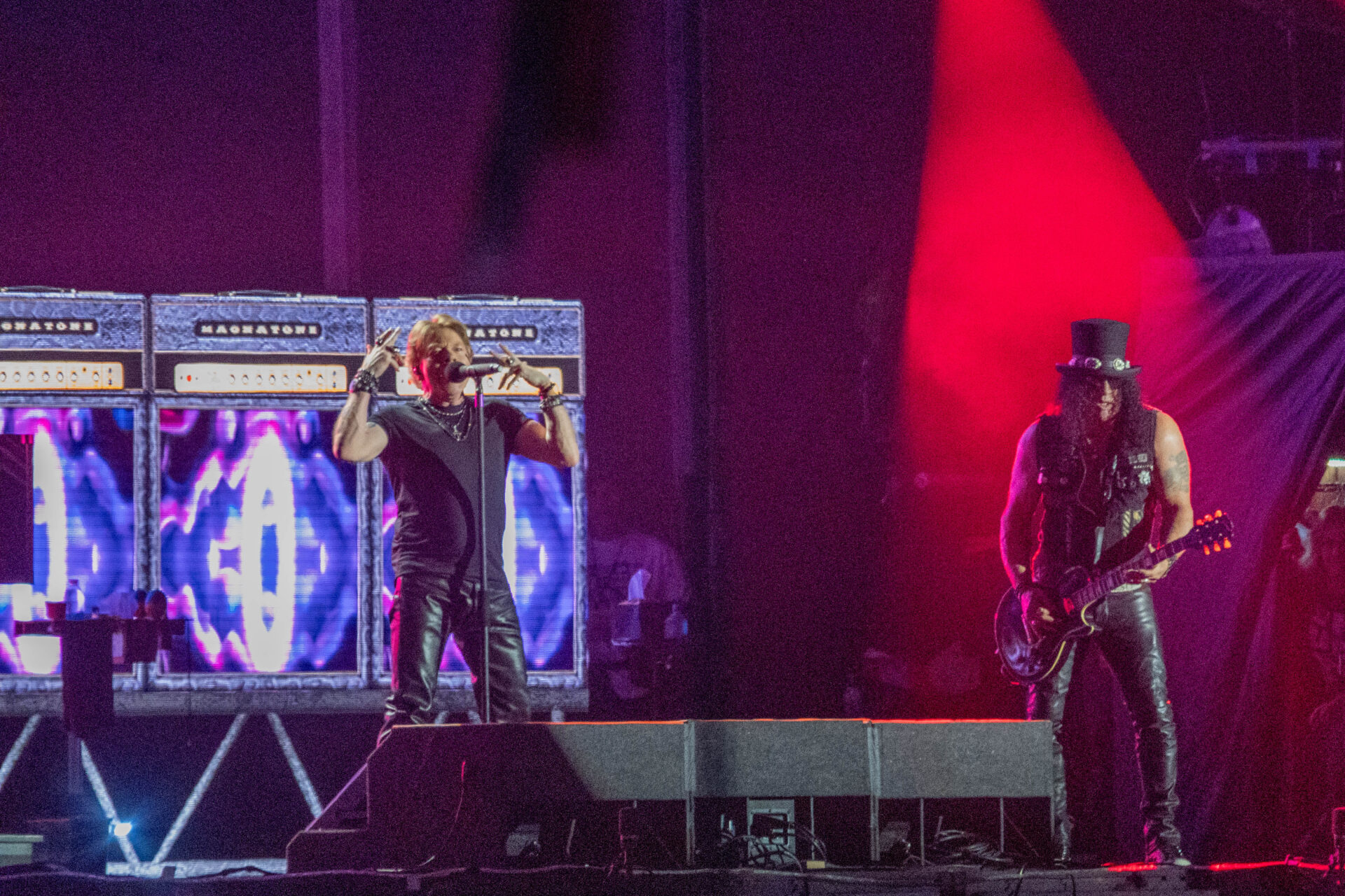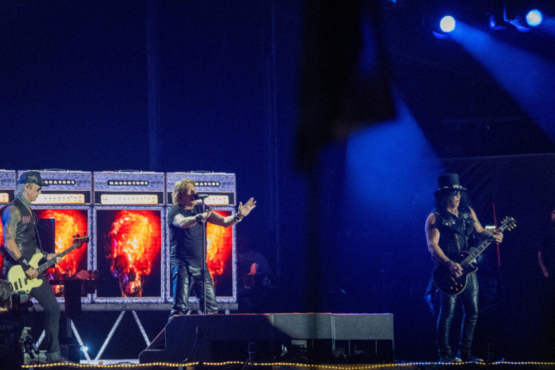 Sabemos que no es el mismo que en sus mejores años, también sabemos que ha pasado por diferentes estados físicos, mientras iba avanzando el show Axl iba mejorando su voz en algunas canciones, en otras se notó que le pesaba mantener su clásico tono de voz; Duff McKagan, Richard Fortus, obviamente Slash, Dizzy Reed sonaron muy bien, no se cansan de tocar por más de dos horas., nadie se pudo quejar de la entrega de una banda que lleva cuarenta y tantos años en este negocio.