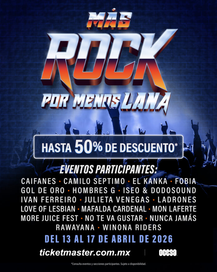 El momento de asegurar tu lugar frente al escenario ha llegado. Regresa la promoción más esperada del año: Más Rock Por Menos Lana, 5 Días de Rock Latino, 120 horas de adrenalina pura donde los conciertos más potentes de nuestra cartelera tendrán hasta un 50% de descuento directo en la compra de boletos. No es sólo una oferta, es tu pase de entrada a las noches que definirán este 2026.