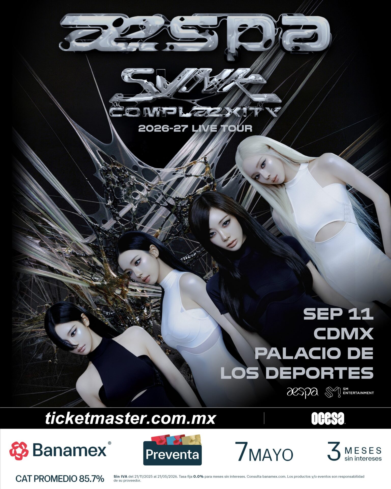 El grupo regresará a Estados Unidos tras el lanzamiento de su próximo álbum LEMONADE, disponible el 29 de mayo. Hoy, la fuerza global del K‑pop, aespa (SM Entertainment), reveló todos los detalles de su próxima gira mundial, 2026‑27 aespa LIVE TOUR – SYNK : COMPLæXITY.