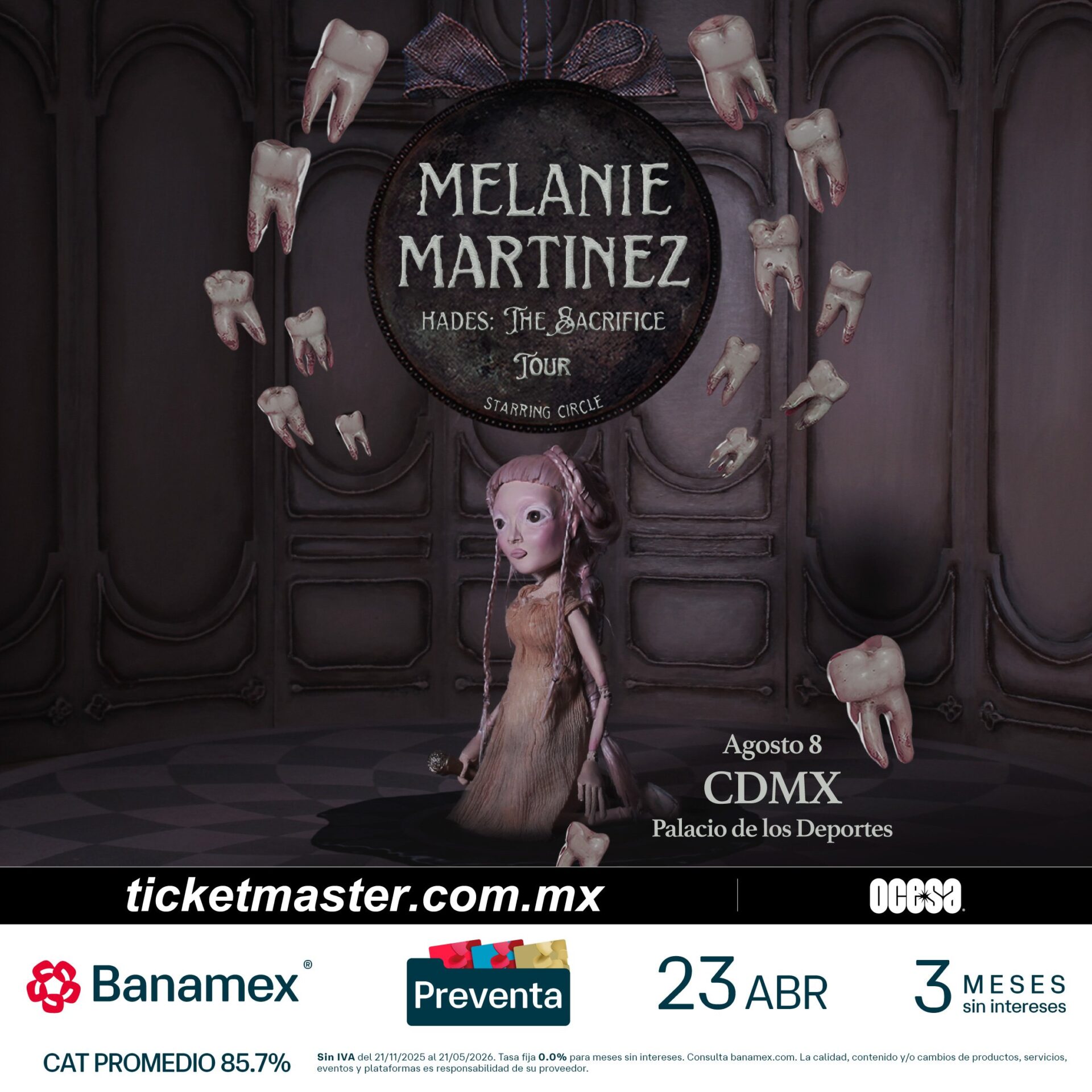 Hoy, la artista multiplatino y polímata creativa Melanie Martinez, anuncia HADES: THE SACRIFICE, su nueva gira por Norteamérica y Europa en apoyo a HADES, su cuarto álbum de estudio. Producida por Live Nation, la gira global comenzará con una primera etapa por Norteamérica y México este verano, antes de cruzar el Atlántico para una serie de conciertos en arenas del Reino Unido y Europa.