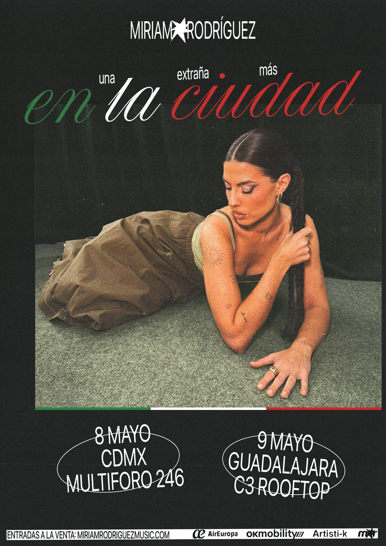 La reconocida cantante y compositora española Miriam Rodríguez, quién saltó a la fama tras quedar como tercera finalista en Operación Triunfo 2017, anuncia su esperado regreso a México con dos presentaciones imperdibles los próximos 8 de mayo en la Ciudad de México y 9 de mayo en Guadalajara, como parte de su gira «Una extraña más en la ciudad».